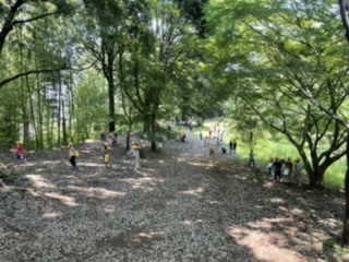 自由に探検の始まりです。 子どもたちは思い思いに友だちと自然探しの探検をしています。