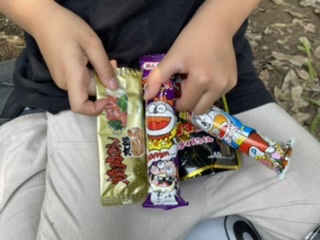 早い子はもうお弁当を食べ終わり、おやつタイムです。