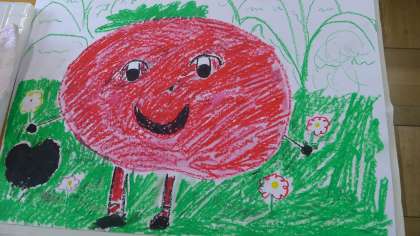2年生が図工の学習を行っていました。 「大きく育てびっくり野菜」をテーマに絵を描いていました。