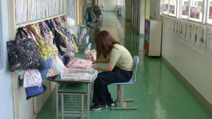 教科担任制の空き時間 公開日 2021/06/11 更新日 2021/06/11 学校生活 高学年が教科担任制になったことで、担任の空き時間と自分のクラスの空いている時間がずれてしまうことがあります。学級担任制では専科の時間は教室が空いているので提出物等を自分のクラスで見ることができました。しかし、教科担任制ではそうも行かないので写真のように廊下で見ることもあります。