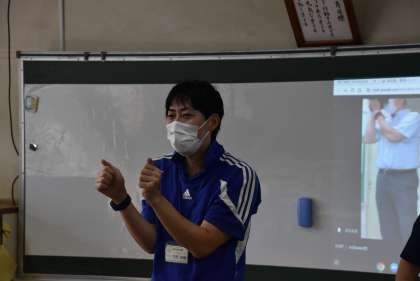 わかば学級の子どもたちが17日にオンラインで行われる小中交流会の練習をしていました。