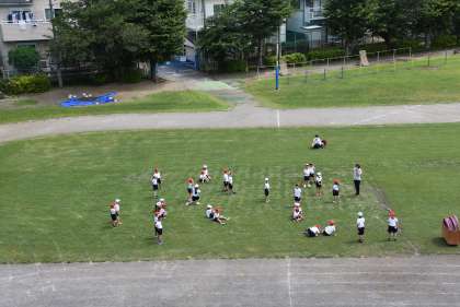 体育 1年 公開日 2021/06/17 更新日 2021/06/17 学校生活 1年生が体育の学習を行っていました。 芝生の上で2人組で体力づくりの運動を行っていましたが、町田市の防災訓練放送が突然行われ、驚いて聞いているところです。