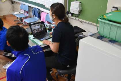 わかば学級の子どもたちが南大谷中のひまわり学級の生徒と町田第二小のわかたけ学級、町田第五小のたけのこ学級と小中交流会をオンラインで行いました。