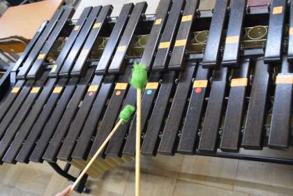 木琴やその他の打楽器に分かれて合奏を行っていました。