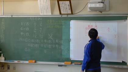 算数 4年 公開日 2021/11/25 更新日 2021/11/25 学校生活 4年生が算数の学習を行っていました。 分数の授業です。分数は帯分数や仮分数、真分数など種類があり分かりにくい単元です。 中学校では既習事項として復習せずいきなり問題の中に出てきます。今のうちにしっかりと身につけておいてください。