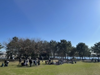 楽しいお弁当とおやつの時間も終わり、そろそろ集まってトイレをすませて午後の活動開始です。