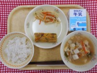 1月17日(月) 公開日 2022/01/17 更新日 2022/01/17 給食 牛乳、菜めし、伊達巻風たまご焼き、じゃがいものごまあえ、大根のそぼろみそ汁 ※ おせち給食として作ったのは、伊達巻風たまご焼きです。伊達巻は本を表しています。知識が増えますように、との意味があります。魚のたらをミンチにしたものを加えたたまご焼きです。おせち料理にはいろいろな意味がこめられていますね。調べてみると興味深いです。