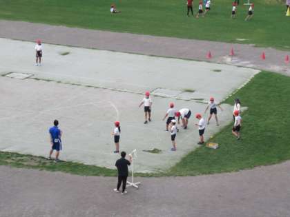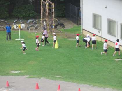 今日も外で体育ができました。わかば学級がボールを投げて点を重ねていくゲームを楽しんでいました。