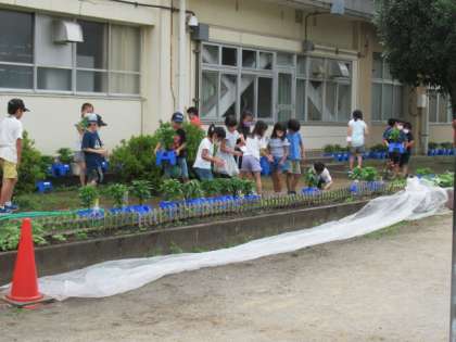 7/6 3年生 大切なホウセンカ 公開日 2022/07/07 更新日 2022/07/07 学校生活 台風の接近に備えて避難していたホウセンカを再び陽当りの良い定位置に戻しています。大切に育てられているホウセンカはとても元気です。