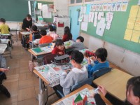 離任された先生にお手紙を書きます。みんな説明をしっかりと聞いていました。