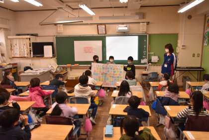 同時並行で全学年に届けたので他の学年の写真は撮れませんでした。