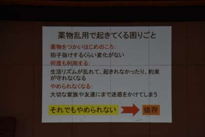 ヤウ物の種類や薬物を使用してしまうとどうなるのか、何が怖いのかなどを詳しく学習しました。