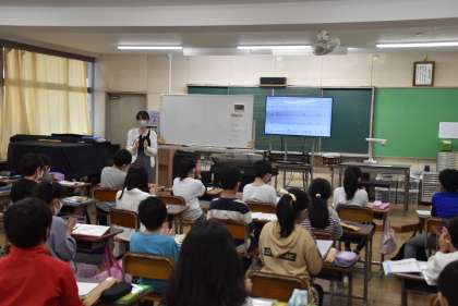 4年生が音楽の授業をしていました。 リズムの学習でした。カスタネットは持たずに、手拍子でリズムを刻んでいました。