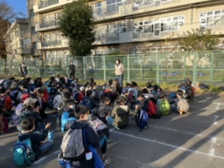 4年生校外学習 その18 公開日 2020/12/04 更新日 2020/12/04 学校生活 学校にはずいぶん前に到着したのですが、計画道路の近くに車が停まっていてバスが入れませんでした。 これから解散式をして下校します。