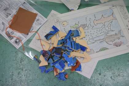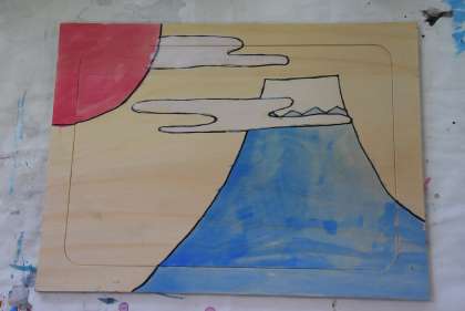 5年生が図工でジグソーパズルを作っていました。 木の板に絵を書いて糸ノコで切って作ります。