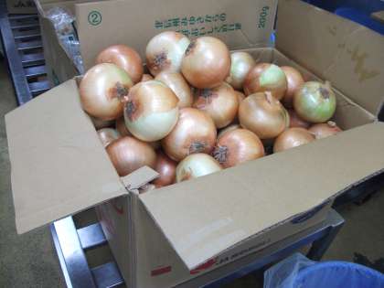 「30キログラムの玉ねぎ(これから一つ一つ手で皮をむきます)」