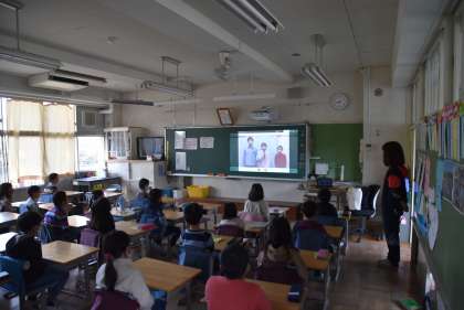 今朝は全校朝会をオンラインで行いました。