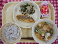 1月14日(木) 公開日 2021/01/14 更新日 2021/01/14 給食 牛乳、深川めし、炒り鶏、からしあえ、きんかん ※ 深川めしは、東京の深川という地区の漁師さんが食べていたごはんだそうです。あさりがたっぷりと入っています。炒り鶏は、おせち料理のひとつで、いろいろな野菜がいっしょに入っていることから、家族が仲良く暮らせるように、との意味があります。きんかんは皮ごと食べられます。