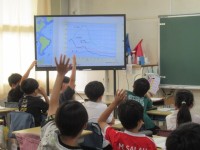 日本の水産業の未来を考える授業です。資料を調べることで現在の課題を洗い出し、それぞれが解決策を考えました。子供たちの資料に向かう表情が真剣でみんな集中して考えていることがわかりました。大切な問題です。