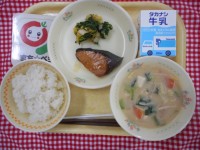 牛乳、町田のご飯、ぶりの照り焼き、ゆず風味あえ、町田野菜の飛鳥汁きょうは「まちベジ給食」です。町田で収穫できる食品を使って給食を作りました。地域でとれたものを、その地域で使う「地産地消」の取り組みです...