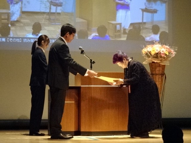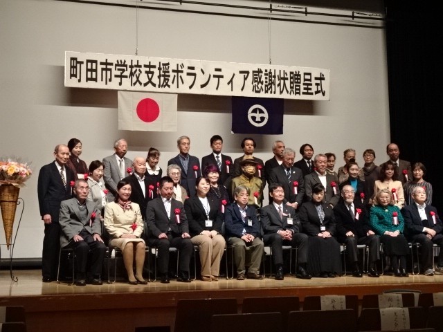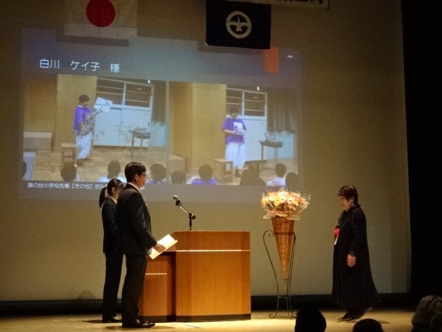 24日に町田市民フォーラムで、町田市内の学校に関わるボランティアの方々への感謝状贈呈式が行われました。藤の台小学校からは、10年以上藤の台小学校の読み聞かせをしてくださっている白川ケイ子さんを推薦させていただきました。東日本大震災を経験され、そのお話なども交えながら福島の方言であたたかな語りをしてくださっています。