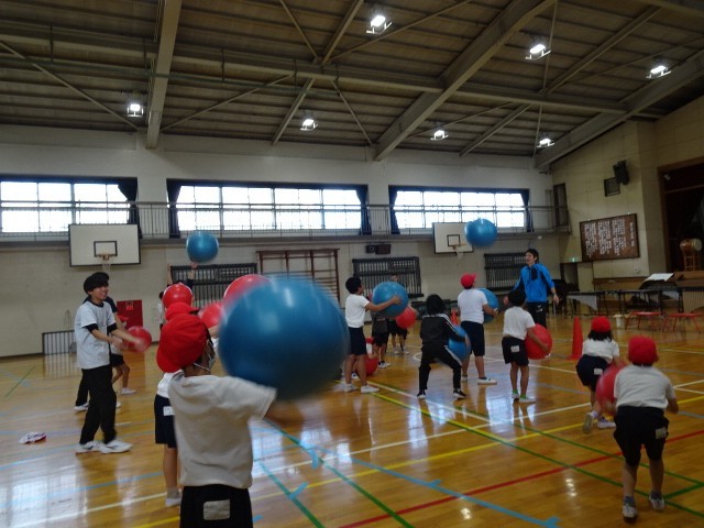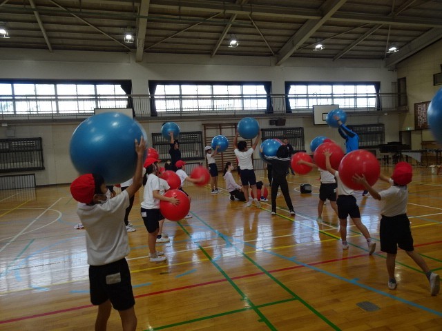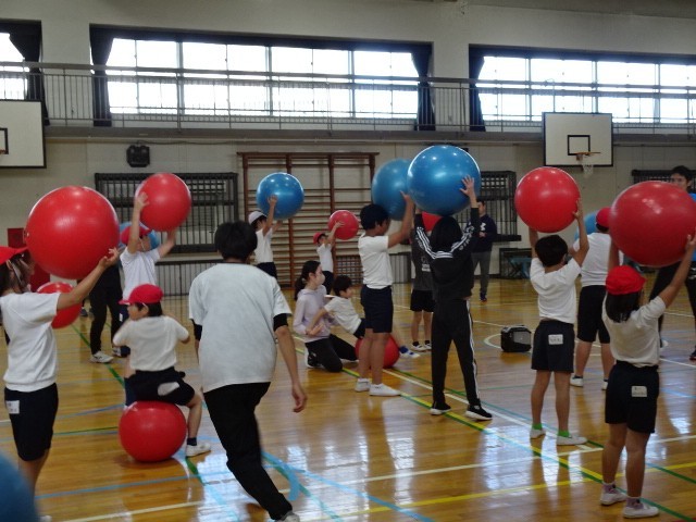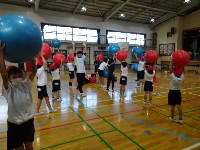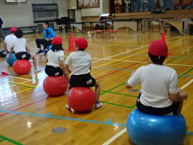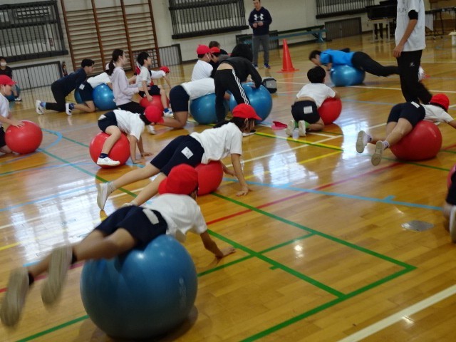 藤級に国士舘大学からゲストティーチャーと学生がいらっしゃいました。Gボール(バランスボール)に座ったり、座って足を動かしたり、その上に寝そべってみたり、持って体をひねったり、持ち上げたり、上に投げてみたり、、、たくさんの動きを楽しんだり、『パプリカ』の曲に合わせて動いたりしました。ふだんあまりしないような動きを体験したり、継続すると体幹を鍛えたりすることができるそうです。楽しんで終わった後の子供たちは、すがすがしい顔をしていました。