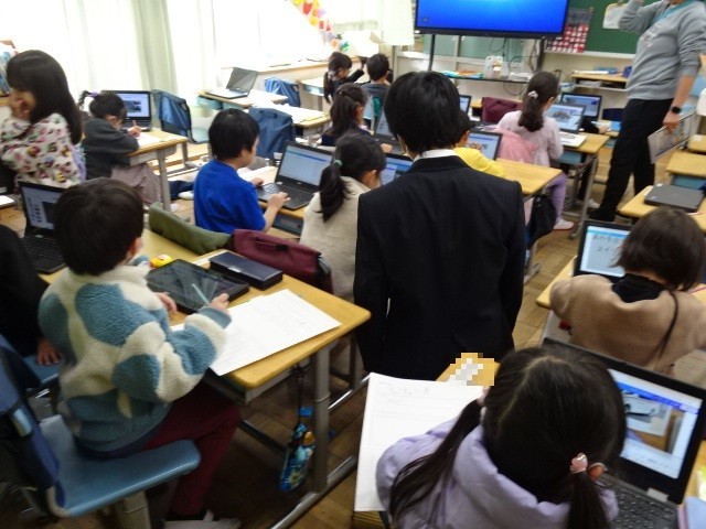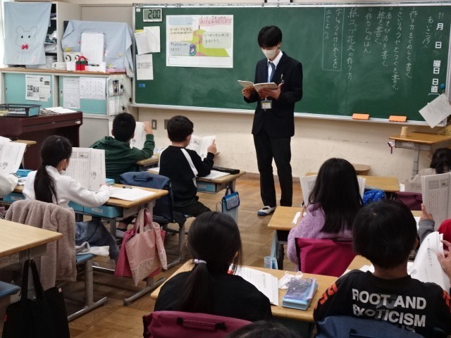 授業中は困っている児童への支援や教員の補助、教科書の範読、九九検定、声掛けなど積極的に活動し、休み時間は教室や校庭で遊ぶ子供たちと関わり合いながら過ごしていました。『明日も(教室に)また来てね』と言われたことが嬉しかったと感想を言っていました。小学校での職場体験を今後に生かしてもらえればと思います。