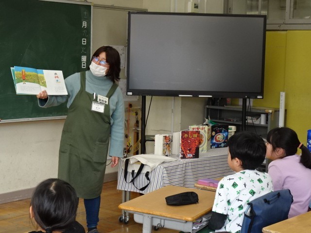 町田市立図書館の方々がおいでになり、クラスごとに4年生にブックトークをしてくださいました。今回のテーマは『おなかがすいた~』です。『干し柿』『たい焼き総選挙』など食べ物にまつわる本の紹介をしてくださいました。この先はどうなるのかな?というところで、あとはぜひ読んでみてください。と本の貸し出しもしてくださいました。みんなのりのりで楽しそうに聞いていました。