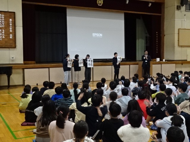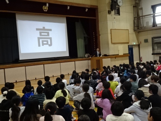 2025年最後の日、全校児童が体育館に集まって朝会を行いました。今年の漢字は『熊』でしたが第二位は?第三位は?と今年を振り返りながら校長先生からお話がありました。また、小学生が選んだ今年の漢字は何だったでしょう。5年生のクラスが一人ずつ挙げた漢字の第一位と同じで全校児童もびっくりしていました。答えは写真にあります。