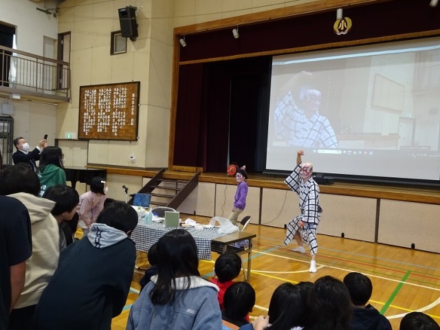 6年生が、笑顔と学びの体験活動プロジェクトでお呼びした『歌舞伎スクール出張寺子屋』の方々に、歌舞伎について教えていただきました。