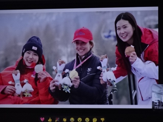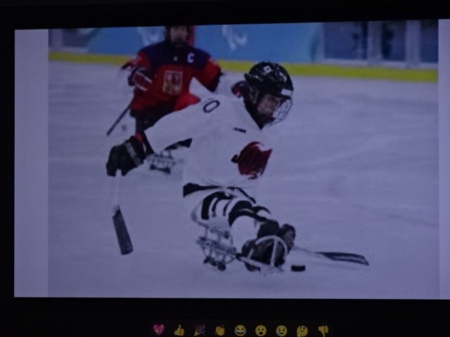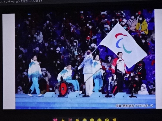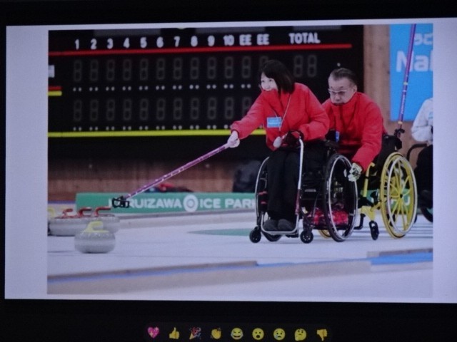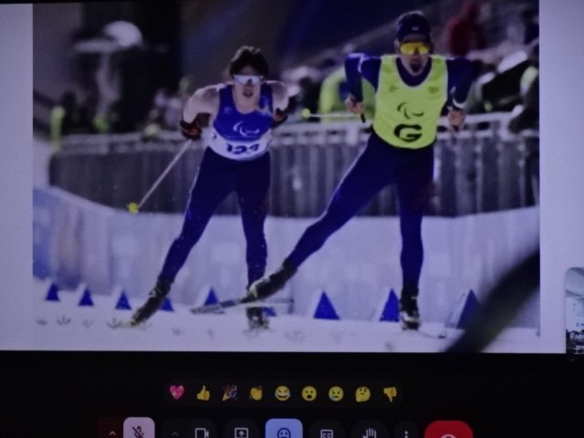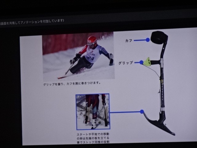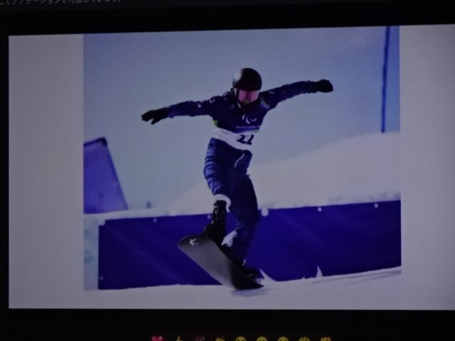 これは何でしょうか。という校長先生からの質問がありました。答えは3のパラリンピックで使うスキー滑降競技の道具です。パラリンピックは閉会しましたが、『できないことをあきらめるのではなく、考えたり工夫したりしてできるようにする』という考え方がパラリンピックの根底にあるそうです。それは私たちの生活にも通じることですね。日本人も活躍しました。というお話でした。