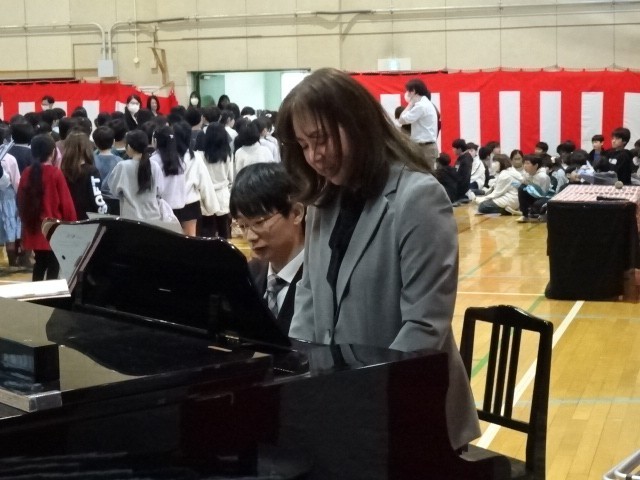 退場の時に音楽専科の教員が校歌や『旅立ちの日に』を演奏したところ、たくさんの子たちが歌を口ずさんでいました。最後まで残った5年生が二部合唱を披露して体育館がとても温かな空間になりました。5年生さんありがとうございました。