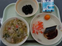 2026年の給食が始まりました。献立は、黒豆、きんかん、紅白なます、魚のゆずみ...