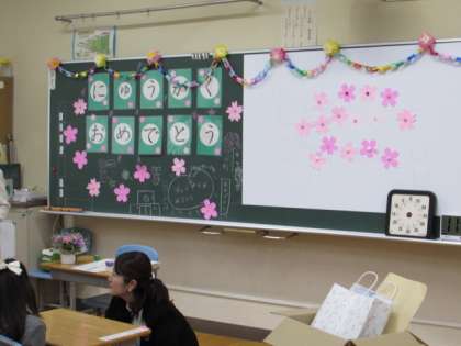始業式後、今度は新1年生の入学式です。6年生は残って1年生のお世話で活躍してくれました。