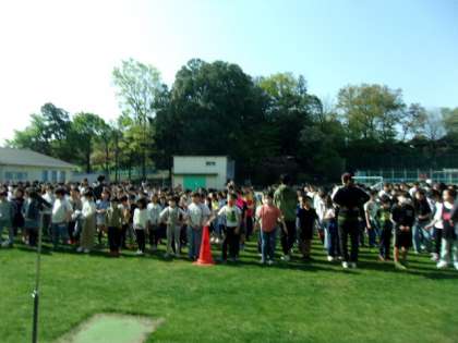 8時30分、校庭には全校児童がしっかり整列し、スタッフの方々が登場を待ちます。とても立派な態度です。