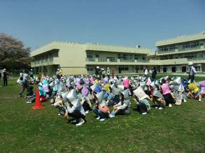まだ学校生活に慣れていない1年生は、今回はいっしょに避難することはしませんでしたが、ベランダに出て整列し、「お・か・し・も」の約束を守って移動する上級生の様子を見学しました。見学する姿勢はとても立派でした。