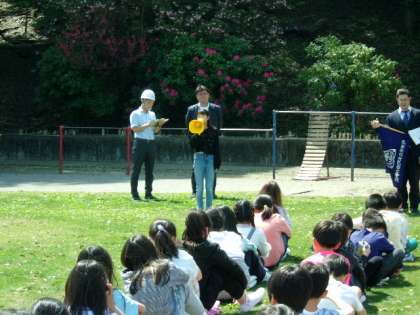 今年度最初の訓練でしたが、みんな緊張感をもって参加することができ、校長先生からも100点満点の評価をしてもらいました。最後に6年生の代表児童が、今日の取り組みについて振り返りを言ってくれました。次回5月の訓練からは、1年生も参加して行います。