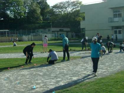 放課後先生方は、来月の運動会に向けて、会場となる校庭の芝生の整備や、目印となるペグを校庭に打つ作業などを行いました。まだ新学期も始まったばかりですが、先生方は先を見据えて準備に余念がありません。早々と運動会モードになってきています。