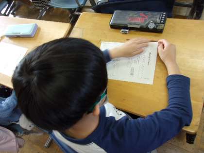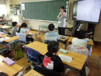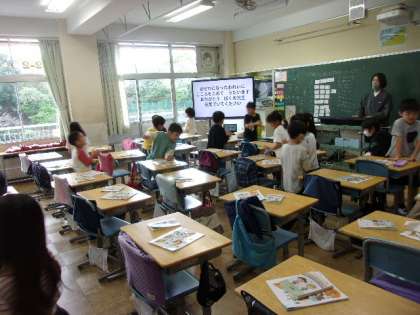 今日は全学年4時間授業です。2時間目に3回のフロアを回っていると、2年1組の教室からは、ピアノの演奏とともに楽しそうな声が聞こえてきます。音楽の授業で、ピアノのリズムに合わせて、教室を歩き回って手拍子をする課題に、子どもたちは夢中でした。3年1組は道徳の授業で、あいさつについて学習していました。どの教室もしっかり課題に取り組んでいました。