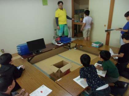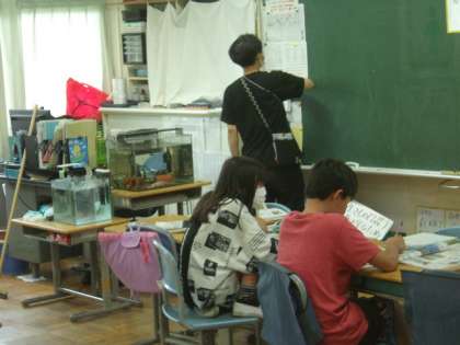 2組のそれぞれの教室では、課題に一生懸命取り組もうとしている子どもたちがいます。学習環境を変えて、和室で授業を受ける3年生に、5年生は個別に課題に集中していました。それぞれ課題は違いますが、がんばりたい気持ちはみんな同じです。
