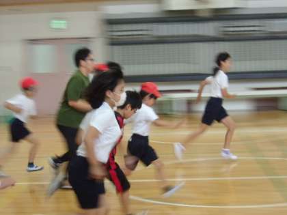 先週実施した体力テストで、欠席などで参加できなかったみどり学級の子どもたちが、シャトルランをがんばっていました。友達同士励まし合って、自分の限界に挑戦姿に感動しました。