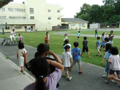 昼休みは、それぞれ思い思いの時間を過ごす子どもたちです。校庭では、2年生が先生とだるまさんが転んだの遊びをしていました。校長室には6年生の男子が、カードゲームに興じていました。のんびりした昼のひと時です。