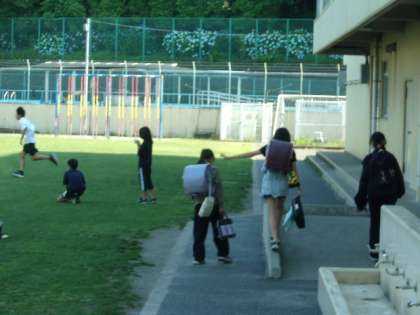 1週間の授業を終えて、すっきりした表情で子どもたちが下校します。今週は真夏のような日もあり、疲れもたまっていることと思います。土日はしっかりリフレッシュして、また来週もがんばりましょう。