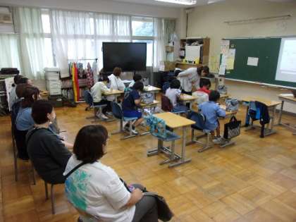 4時間目は、みどり学級の各教室で授業公開が行われていました。生活科の授業や総合的な学習の中で、タブレットを上手に活用した授業が展開されていて、保護者の方々には間近で子どもたちの取り組みの様子をご覧いただきました。