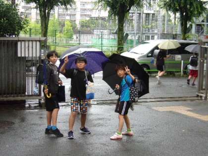 6時間授業を終えた中・高学年の子どもたちが下校します。どの学年も1週間、よくがんばりました。まだ雨が降っていますが、きっと明日はよいお天気になります。土日はしっかりリフレッシュして、また月曜日からがんばりましょう。