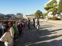 今日は久しぶりの校庭での全校朝会でした。オンラインでの全校朝会が続いていました...