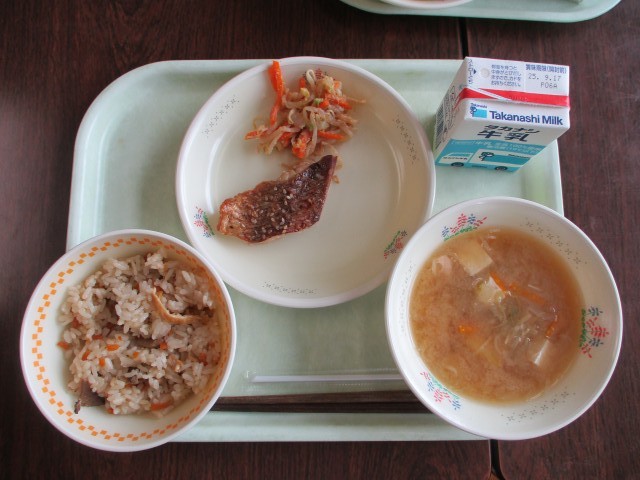 今日の給食です! 公開日 2025/09/12 更新日 2025/09/12 校長室より 今日の給食は、「まいたけご飯」「あかうおの香味焼き」「ごまあえ」「みそ汁」です。「まいたけご飯」の「まいたけ」は、東京都の檜原村で栽培されたものです。 校長室より 全学年