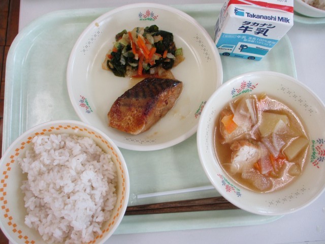 今日の給食! 公開日 2025/10/01 更新日 2025/10/01 校長室より 今日の給食は、「麦入りご飯」「サバの味噌煮」「わかめのおひたし」「けんちん汁」です。「サバの味噌煮」はサバにたっぷりと味噌ダレをかけてオーブンで焼いて作りました。 校長室より 全学年