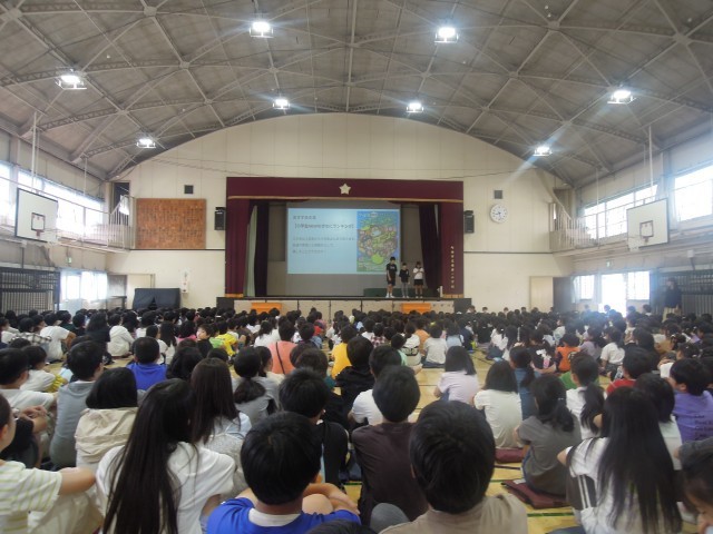 今日の児童集会は『図書委員会発表』でした。図書委員さん達のおすすめの本や図書室の使い方についてのクイズをわかりやすく発表しました。紹介してもらった『心理テスト』や『ミッケ!!』などをぜひ読んでみてくださいね。