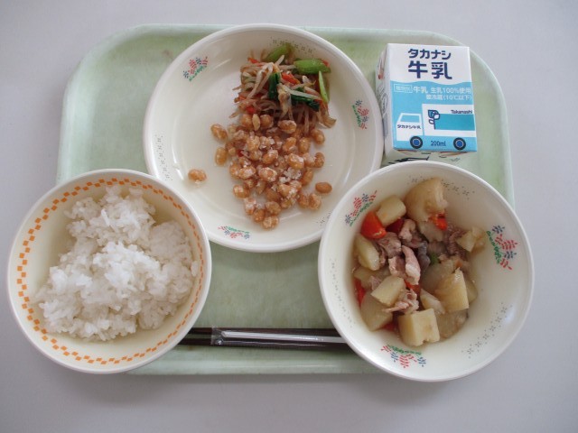 きょうの給食です! 公開日 2026/01/14 更新日 2026/01/14 校長室より 今日の給食は、「塩肉じゃが」「しめじあえ」「大豆の唐揚げ」です。普通の「肉じゃが」は、醤油で味をつけますが、今日は「塩こうじ」という調味料で味をつけています。 校長室より 全学年